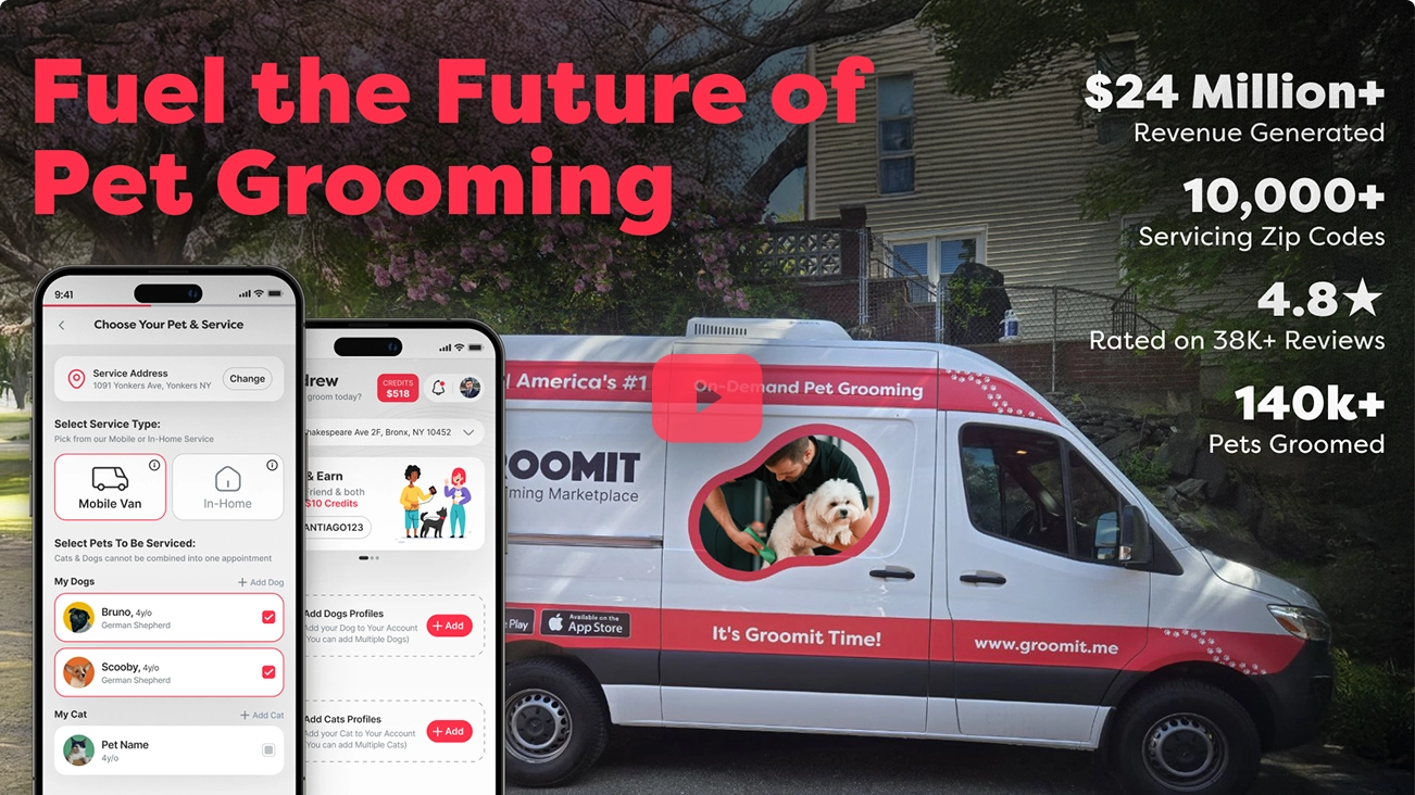 Groomit has come a long way over $24 million in bookings, 140,000+ pets groomed, and a loyal community that helped us get here. But we’re just getting started. With your support, Groomit is not only growing, it's redefining the pet grooming industry. Now, we're inviting you to be more than a customer. Be part of the movement. Own a piece of Groomit.